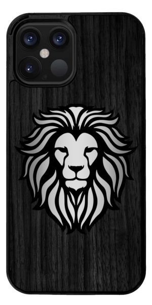 Case compuesto por lámina de madera de nogal con mancha obscura, incrustaciones de Láser foil especial para grabado láser en tonalidades dorado y plata